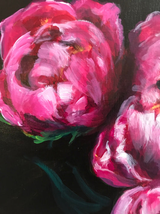 PEONIES BY MOONLIGHT | 16X20 | ORIGINAL ACRYLIC PAINTING ON WOOD | Item number 20-39P