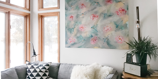 PEONIES AND BLUEBIRDS | 48x60 | ORIGINAL ACRYLIC PAINTING ON CANVAS | Item number 20-2P