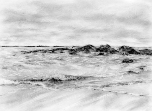 Rocks and Waves| 16x20 | CHARCOAL AND CHALK ON PAPER | 22-58